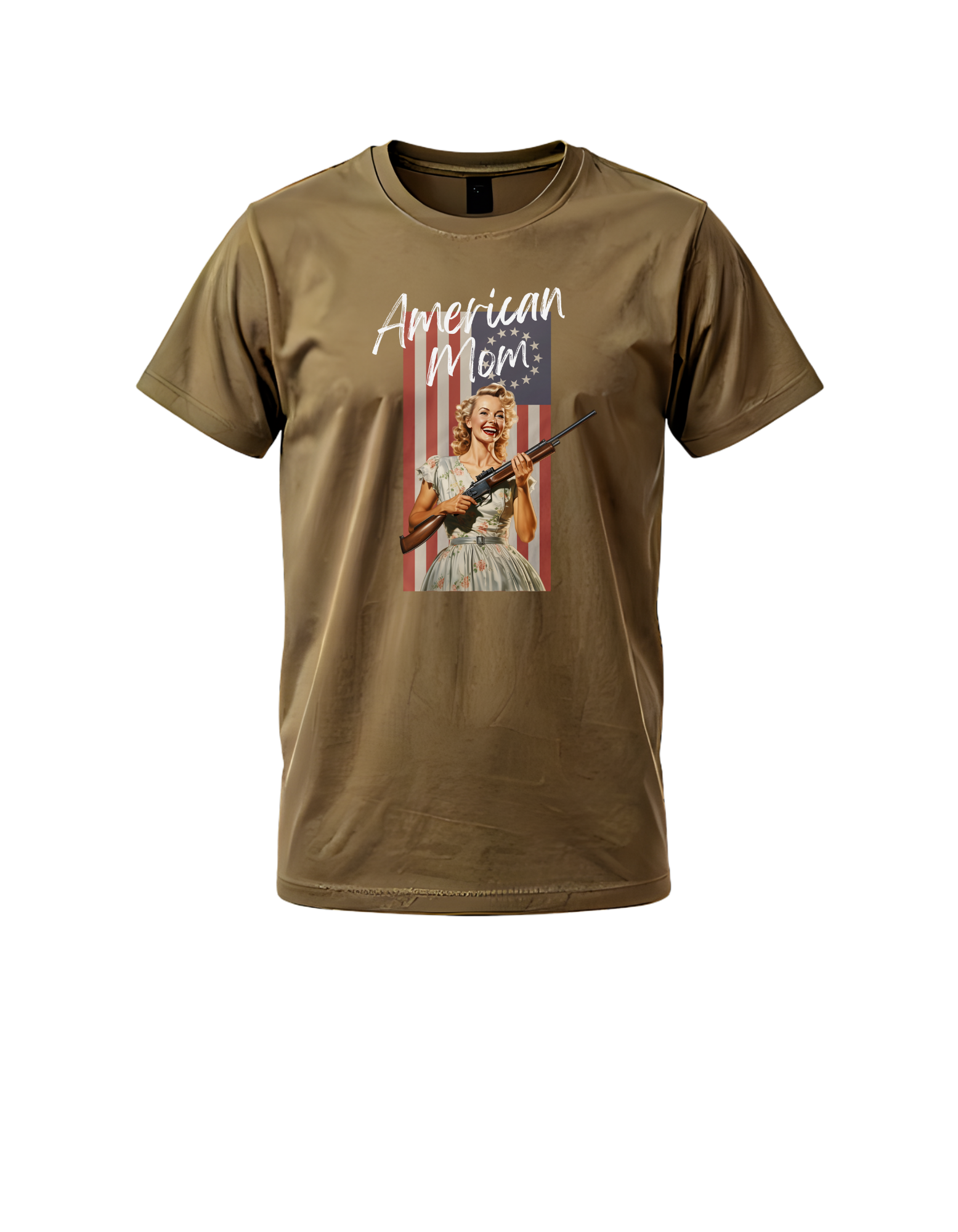Celebrate strength, tradition, and timeless American pride with our American Mom tee. Featuring a vintage-inspired 1950s pin-up style design set against a patriotic backdrop, this shirt blends classic Americana with bold, confident energy.